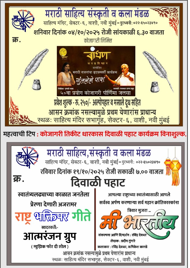 जेव्हा नवी मुंबईचा इतिहास लिहिला जाईल, तेव्हा एक पान अभिमानाने मराठी साहित्य, संस्कृती व कला मंडळाच्या नावाने सजलेले असेल.